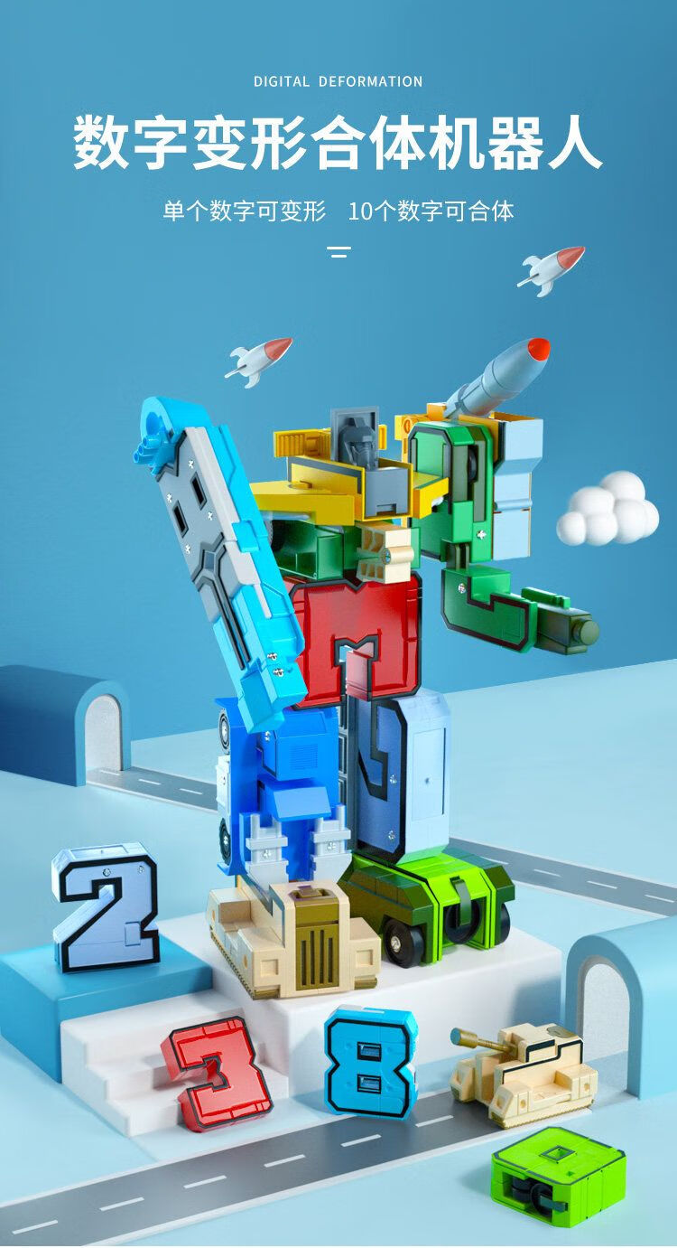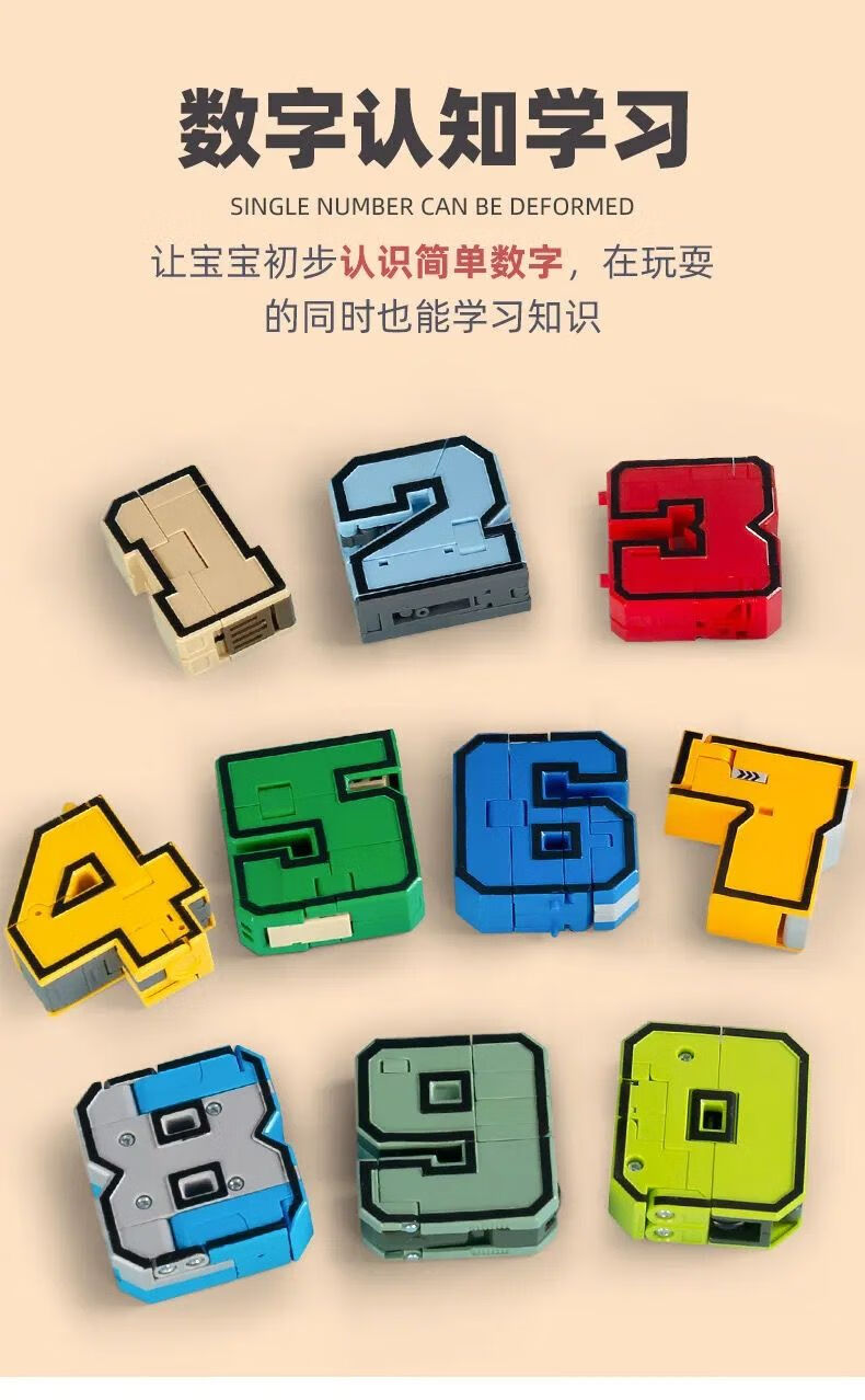 贝英杰0到9数字变形玩具全套装汽车合体机器人金刚智力男孩儿童益智创意 8*号x
