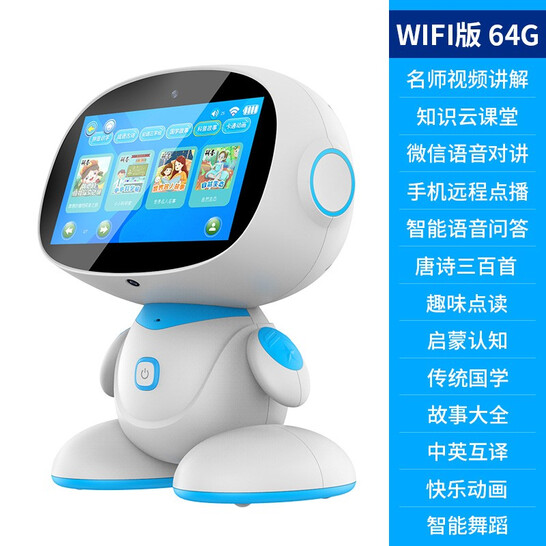 智能机器人早教学习机wifi 微信儿童触摸屏视频故事机学习机1-3-6岁婴幼儿益智玩具男女孩生日礼物 蓝色64Gwifi微信版(配K歌话筒)S1